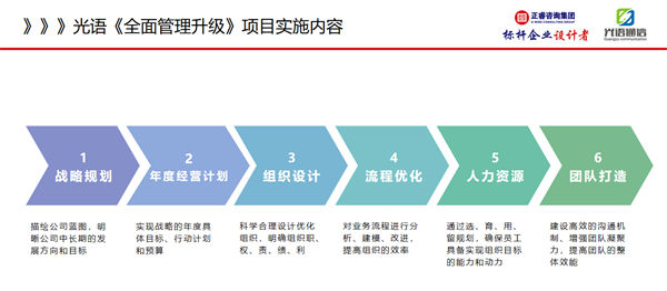 正睿項目總監(jiān)黃奇老師圍繞項目總體思路,指明了管理升級的工作方向與目標。同時,黃奇老師表示,什么樣的發(fā)展道路最適合光語,在座各位最有發(fā)言權(quán),縱觀世界一流企業(yè),管理升級是企業(yè)邁向高質(zhì)量發(fā)展的必經(jīng)階段。